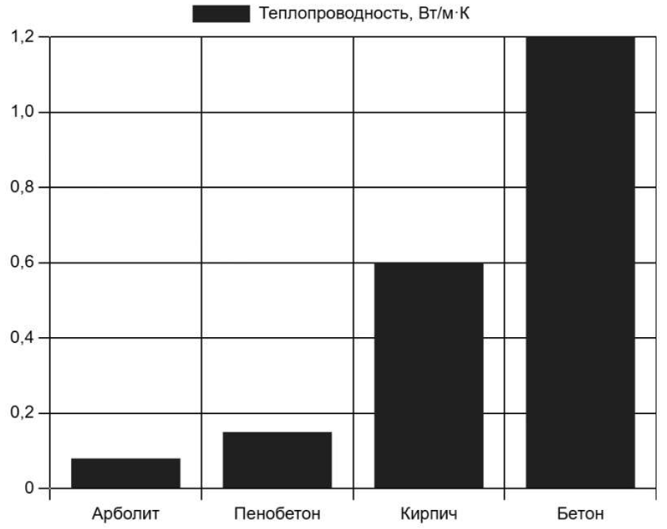 7. Среди традиционных стеновых материалов арболит имеет самую низкую теплопроводность: 0,08-0,17 Вт/м. Таким образом, стена из арболита в 30см по теплопроводности соответствует 1 м кирпичной стены. Дополнительного утепления арболит не требует, т.к. он сам является теплоизоляционным материалом. А значит, нет необходимости в утеплителях, которые ставят под сомнение экологическую чистоту построенного дома. Кроме того, при равном внешнем периметре жилая площадь дома из арболита будет значительно больше.