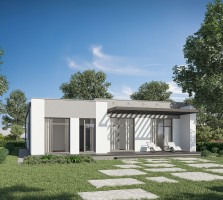 Концептуальный дом от строительной компании "ДМ Групп" с рациональной планировкой. Зонированная кухня - столовая с отдельной гостиной. Панорамные угловые окна обеспечивают достаточно света и выход на террасу. В доме предусмотрены две спальни и современная мастер-спальня, которая предлагает все удобства для комфортного проживания.