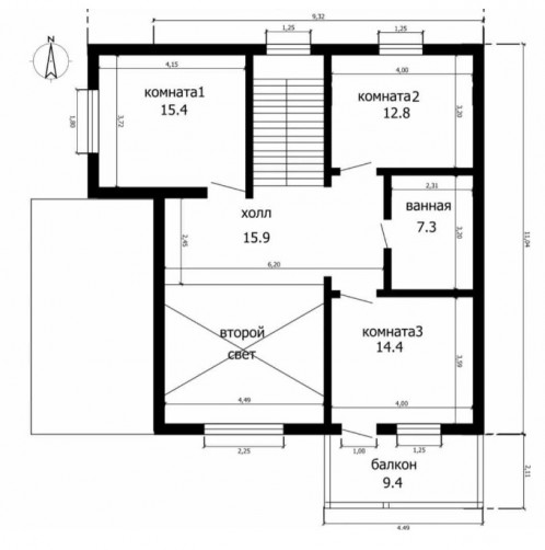 • Ванная комната — удобное расположение позволяет всем обитателям второго этажа пользоваться ею без лишних перемещений.