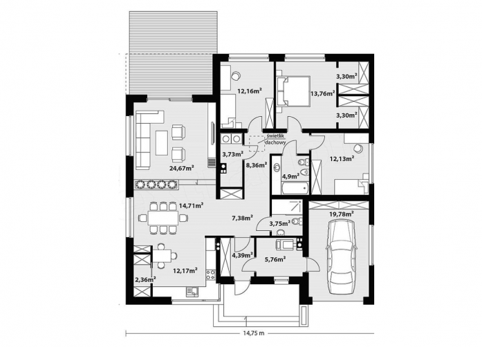 Крыша. Обычно применяется плоская крыша, позволяющая увеличить зону комфорта. Нередко на крыше дополнительно располагается терраса или участок для отдыха.