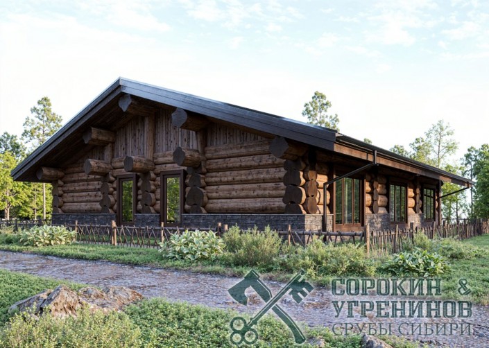 Дом рубленый из большого бревна кедра диаметром 450мм. Сруб общей площадью 229м2. Размер сруба 14х15,2 метров. Дом имеет четыре спальные комнаты, большая гостиная комната совмещена с кухней, небольшая парная и душевая комната, два санузла, прачечная, котельная. И еще есть крыльцо под навесом, и большая терраса с встроенным бассейном. Отличный красивый дом в классическом русском стиле, с высоким цоколем из кирпича и камня, отлично сочетается как эстетически визуально, так и практически, стуны из деревы максмально высоко от земли, а значит от влажности, что сделает дом более долговечным.
