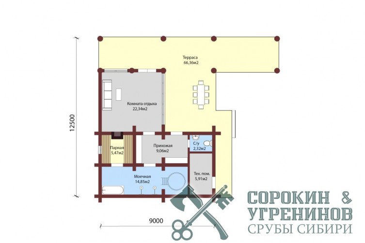 Эксклюзивный банный комплекс рубленый из лафета кедра, построенный по индивидуальному проекту общей площадью 126,31м2. Размер сруба 14х12,5 метров по осям. Баня с большой верандой, парная, помывочная с бассейном-джакузи, большая гостиная с вторым светом и французскими окнами в пол, прихожая и санузел. На террасе зона барбекю, выход к бассейну под открытым небом и зона костровища. Сруб рубленый в норвежский угол. Объем лафета и бревна в срубе 90м3.